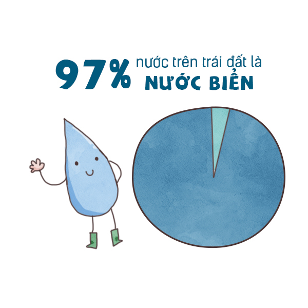 Có lẽ bạn chưa bao giờ có thể tưởng tượng rằng 97% lượng nước trên Trái đất chính là nước biển. Trong 3% lượng nước còn lại, đã có đến 2% là nước đóng băng ở các cực và trên các dãy núi. Chưa đến 1% lượng nước trên toàn thế giới thực sự là nước ngọt. Một phần nước ngọt rất nhỏ còn lại tồn tại dưới dạng hơi. [1]