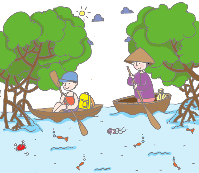 • Trước hết, hãy chú ý khi bạn đi trong rừng ngập mặn – đảm bảo rằng bạn không vô tình làm gãy cây rừng hay giẫm đạp lên cây con khi đi vào trong rừng, hay lúc đi đánh bắt tài nguyên như cua, tôm và cá.
