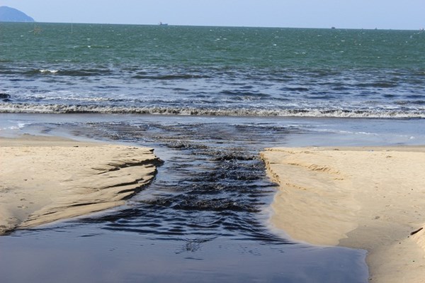 Nước thải chảy tràn ra biển ở thành phố Đà nẵng. Ảnh: Cổng Thông tin Quan trắc Môi trường.[4]